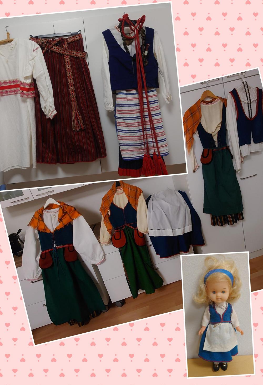 Teemana oli muistojen vaate. Saimme tutustua ja kuulla historiaa Oulunseudun, Peräpohjolan, Lavansaaren ja Kirvun puvuista. Samoin kuulimme tarinoita muistojen vaatteista ja asusteista mm vanhoista vihkikengistä, mummon mekosta, marimekoista, silkkihuivista ja laukusta. Osa vaatteista oli edelleen käytössä ja ihailimme niiden taitavia leikkauksia ja hyvää käsityön jälkeä.