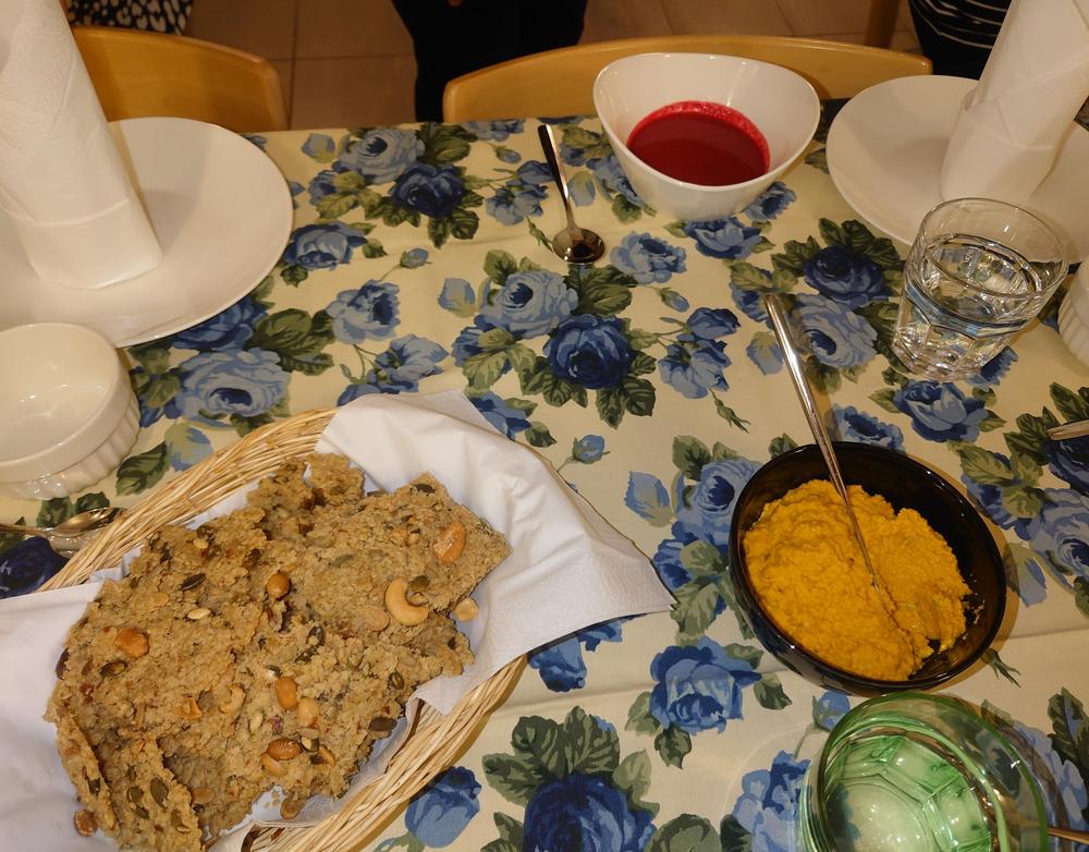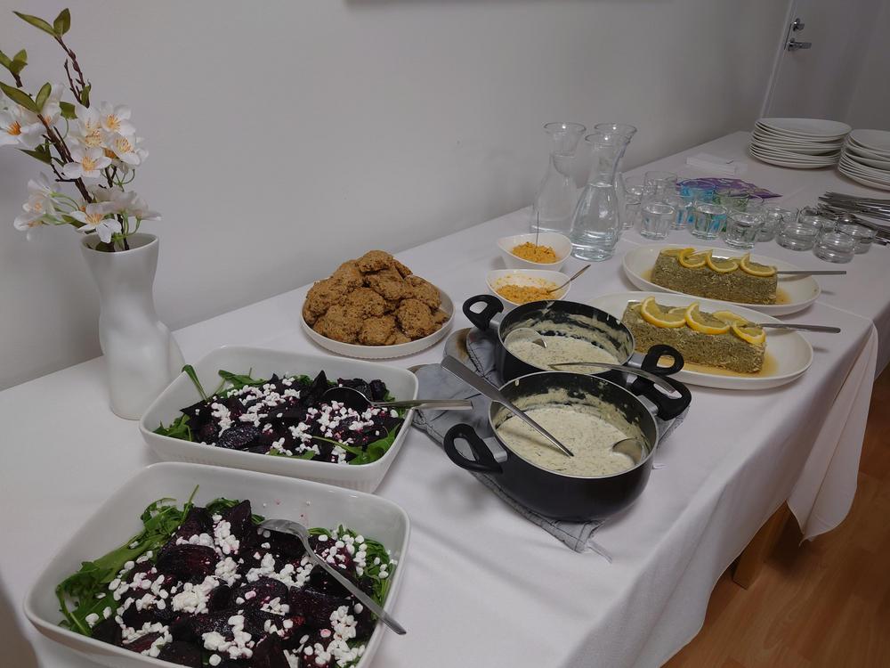 Kokoonnuimme syksyn sadon merkeissä. Kasvatuslavamme tuotti kesäkurpitsaa, mutta punajuuret ja porkkanat olisivat vaatineet syvemmän kasvatusalustan. Syksyn satoa käytetiin illan raaka-aineina. Valmistimme punajuurikeittoa, siemennäkkäriä ja porkkanalevitettä. Ruokaillan päätteeksi nautimme kahvit maukkaan omenapaistoksen ja jäätelön kera.