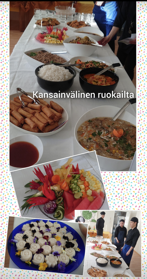 Vietimme toivotun, perinteisen ja monipuolisen kansainvälisen ruokaillan OPAO:n opiskelijoiden kanssa. Eri maiden ruokakulttuuriin tutustuimme seuraavasti:
