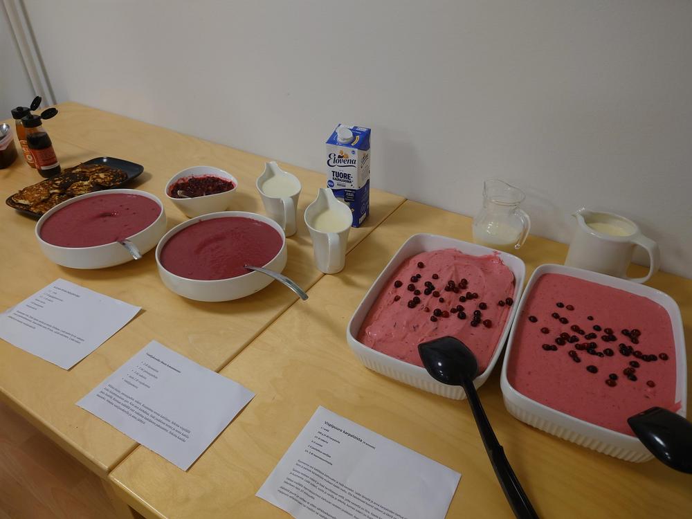 Perinteinen puuroilta kehitysyhteistyön hyväksi. Valmistimme puuroja, joissa käytimme kotimaisia marjoja. Vispipuuro valmistui tällä kertaa karpaloista. Gluteenittomana versiona teimme kaura-puolukkapuuroa. Molemmat puurot maistuivat vanilijakastikkeen kera, joka valmistui ilman kananmunaa vispikermalla. Lopuksi kahvin ja teen seurana oli riisipuuroletut kastikkeena puolukka- ja hilla- makusiirapit.
