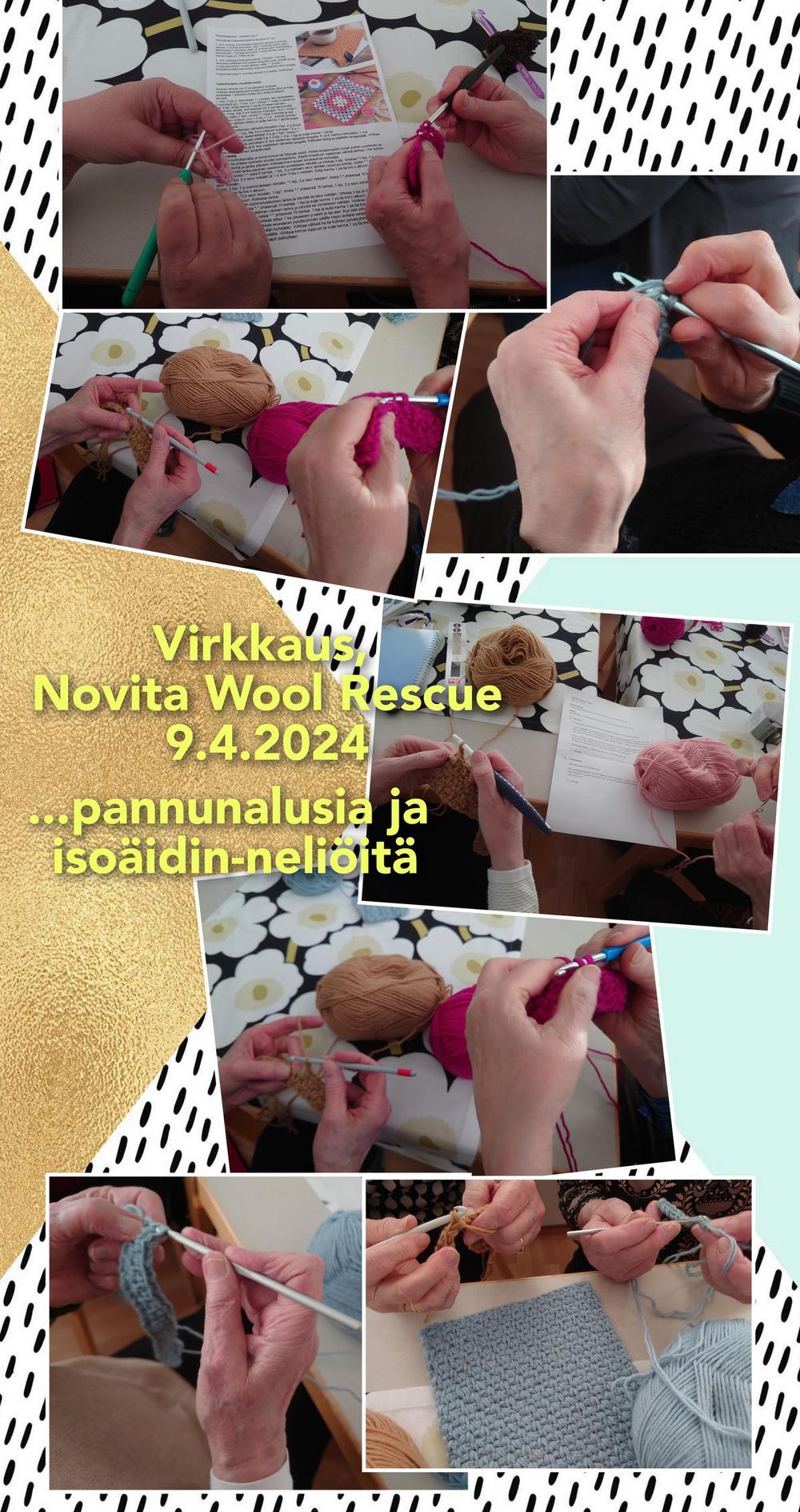 Testattiin Novitan Wool Rescue -lankaa "tuetaan tulevaisuuden harrastajaa" tempauksen ohjeilla ja suunniteltiin tempauksen toteutusta. Teimme pannunalusia ja kokeilimme myös isoäidin neliöiden virkkausta. #martat #novitaknits